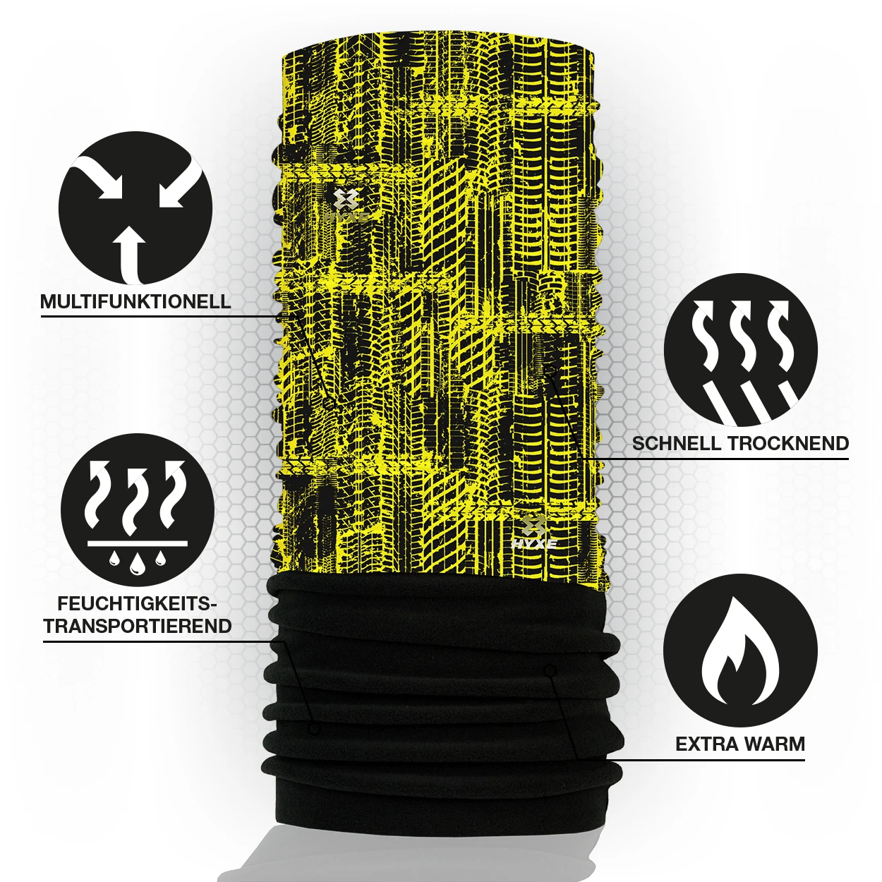 Das Hyxe Original Fleece Multifunktionstuch ist Oeko-Tex® zertifiziert und wird mit viel Liebe zum Detail sowie einem hohen Maß an Nachhaltigkeit und Qualität gefertigt. Es lässt sich aufgrund seiner vielfältigen Anwendungsmöglichkeiten problemlos zu z. B. einer Mütze, einem Stirnband oder einem Haarband umwandeln und ist somit für die verschiedensten Aktivitäten der perfekte Begleiter.