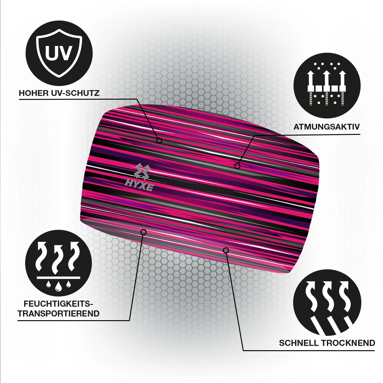 Das Headband von HYXE ist zu 100% aus hochwertigem Polyester gefertigt. Dieses funktionales Headband verfügt nur über besonders wenige flache Nähte, wodurch ein angenehmeres Tragegefühl entsteht. Ebenso wird Feuchtigkeit ideal abtransportiert. Das Headband ist nicht nur atmungsaktiv, sondern hemmt außerdem die Geruchsbildung, weil es antibakteriell ist. Ein weiterer großartiger Vorteil ist die schnelle Trocknung. Das Headband ist nicht nur als Stirnband ideal tragbar, man kann es ebenfalls ausgezeichnet am Hals tragen. Es entspricht ebenfalls dem OEKO-TEX® Standard 100.