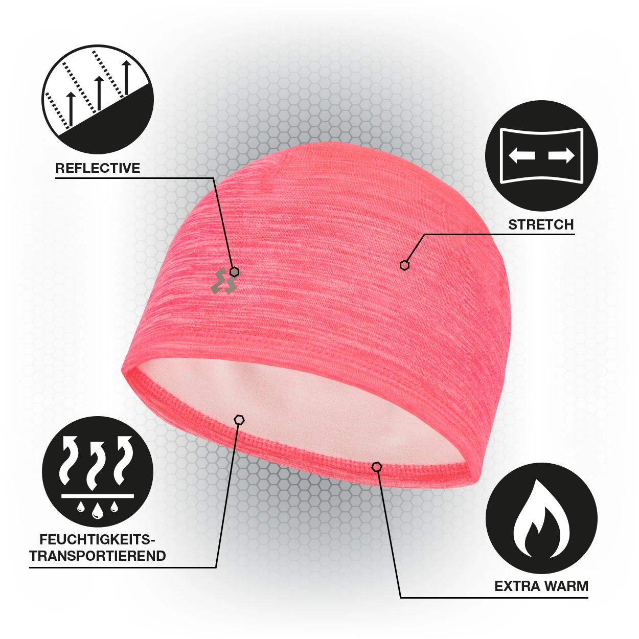 Die Melange Fleecemütze der Marke HYXE eignet sich ideal für das Tragen bei winterlichen Outdoor-Aktivitäten wie z. B. dem Laufen, Joggen oder Wandern. Sie verfügt über eine Innenseite aus weichem und wärmendem Funktionsfleece, wodurch nicht nur der Tragekomfort erhöht sondern auch die Feuchtigkeit ausgezeichnet abtransportiert wird.