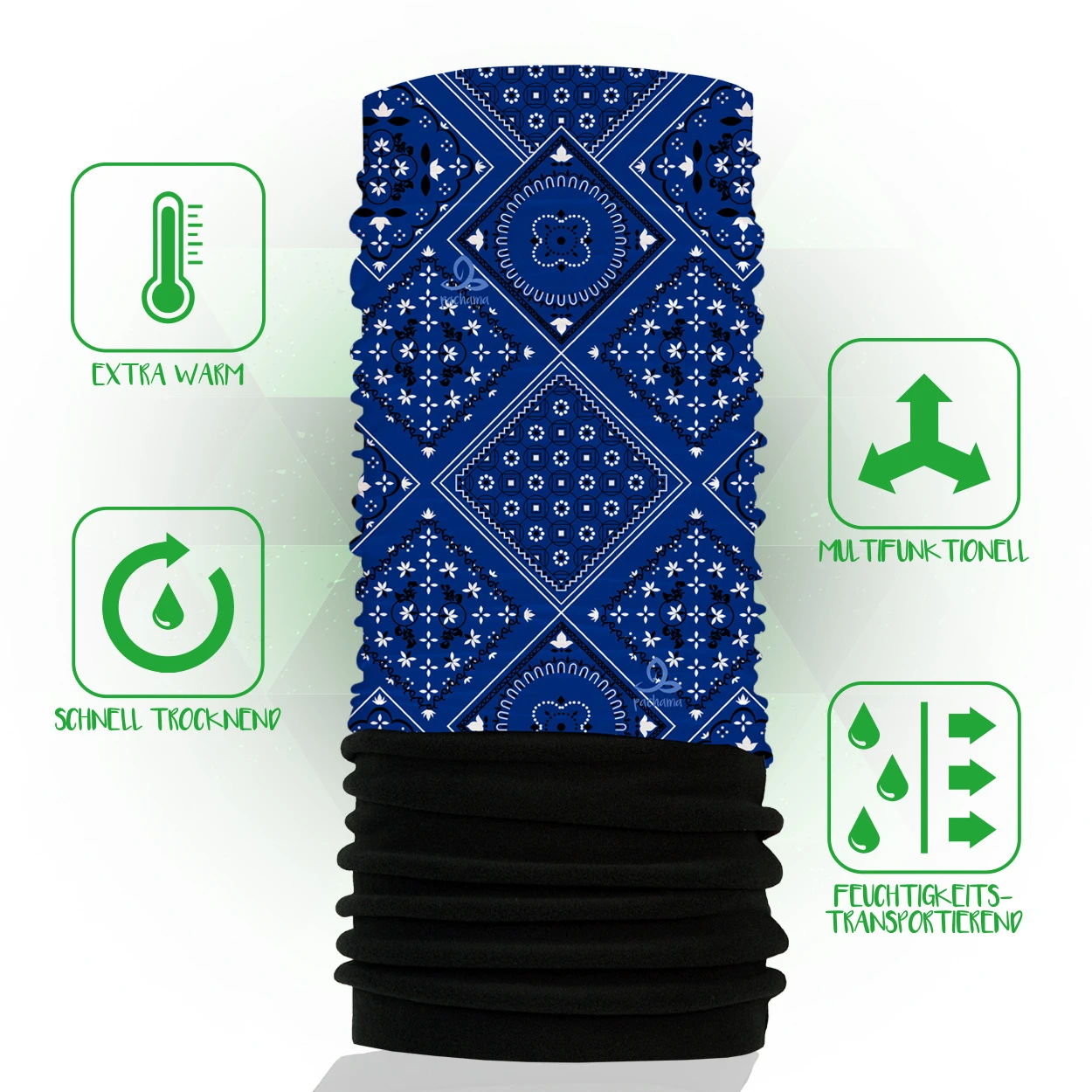 Das Pachama Fleece Multifunktionstuch ist Oeko-Tex® zertifiziert und wird sehr nachhaltig mit viel Liebe hergestellt. Durch das qualitativ hochwertige Fleecematerial wärmt das Schlauchtuch bei niedrigen Temperaturen und ist sehr vielfältig einsetzbar. Es lässt sich problemlos unterschiedlich anwenden z. B. zu einer Mütze, einem Stirnband oder zu einem Haarband und ist somit für verschiedenste Aktivitäten wie z.B. Ski oder Snowboarden, als perfekter Begleiter geeignet.