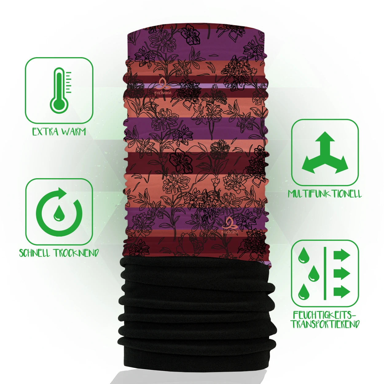 Das Pachama Fleece Multifunktionstuch ist Oeko-Tex® zertifiziert und wird sehr nachhaltig mit viel Liebe hergestellt. Durch das qualitativ hochwertige Fleecematerial wärmt das Schlauchtuch bei niedrigen Temperaturen und ist sehr vielfältig einsetzbar. Es lässt sich problemlos unterschiedlich anwenden z. B. zu einer Mütze, einem Stirnband oder zu einem Haarband und ist somit für verschiedenste Aktivitäten wie z.B. Ski oder Snowboarden, als perfekter Begleiter geeignet.