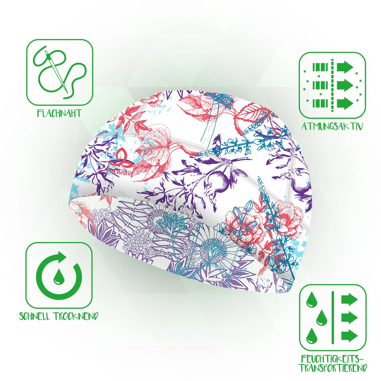 Der Hat der Marke pachama ist zu 100% aus hochwertigem Polyester gefertigt. Diese funktionale Mütze verfügt nur über besonders wenige flache Nähte, wodurch ein angenehmeres Tragegefühl entsteht. Ebenso wird Feuchtigkeit ideal abtransportiert und die Mütze ist nicht nur atmungsaktiv sondern hemmt außerdem die Geruchsbildung, weil sie antibakteriell ist. Ein weiterer großartiger Vorteil ist die schnelle Trocknung.