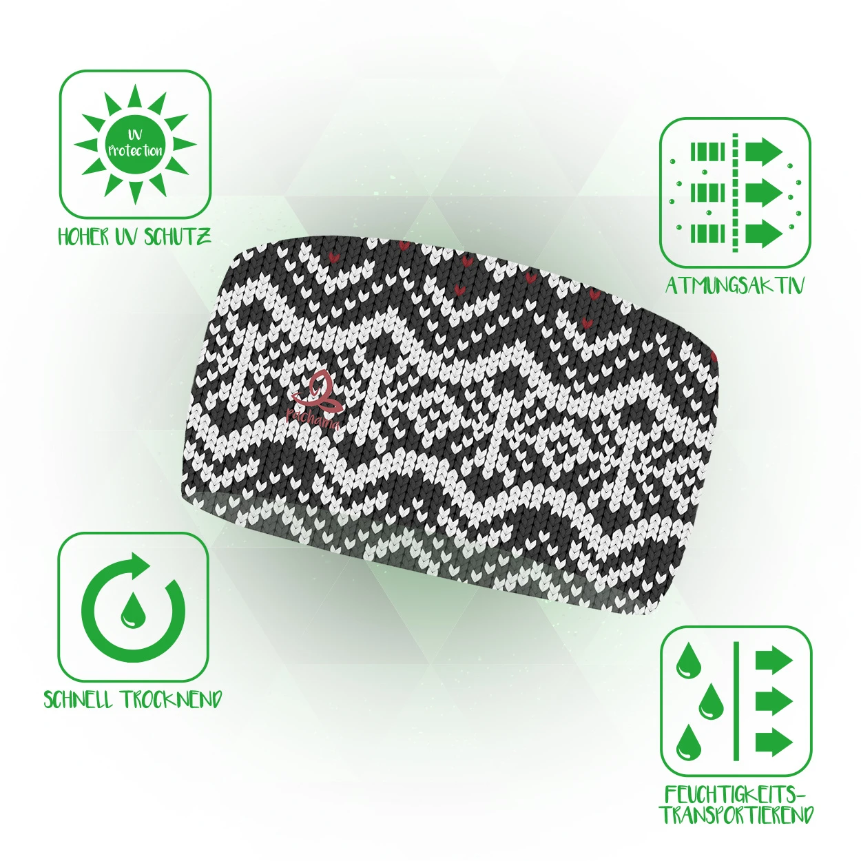 Das Headband von pachama hemmt Dank seiner antibakteriellen Wirkung die Geruchs- und Keimbildung und durch den idealen Feuchtigkeitstransport nach außen, entsteht eine Thermoregulierung. Dieses Headband trocknet auch schnell und ist sehr atmungsaktiv. Sein UV- und Windschutz ist bei unerwarteten Wetterumschwüngen sehr praktisch. Das Headband ist nicht nur als Stirnband ideal tragbar, man kann es ebenfalls ausgezeichnet am Hals tragen. Es entspricht ebenfalls dem OEKO-TEX®.