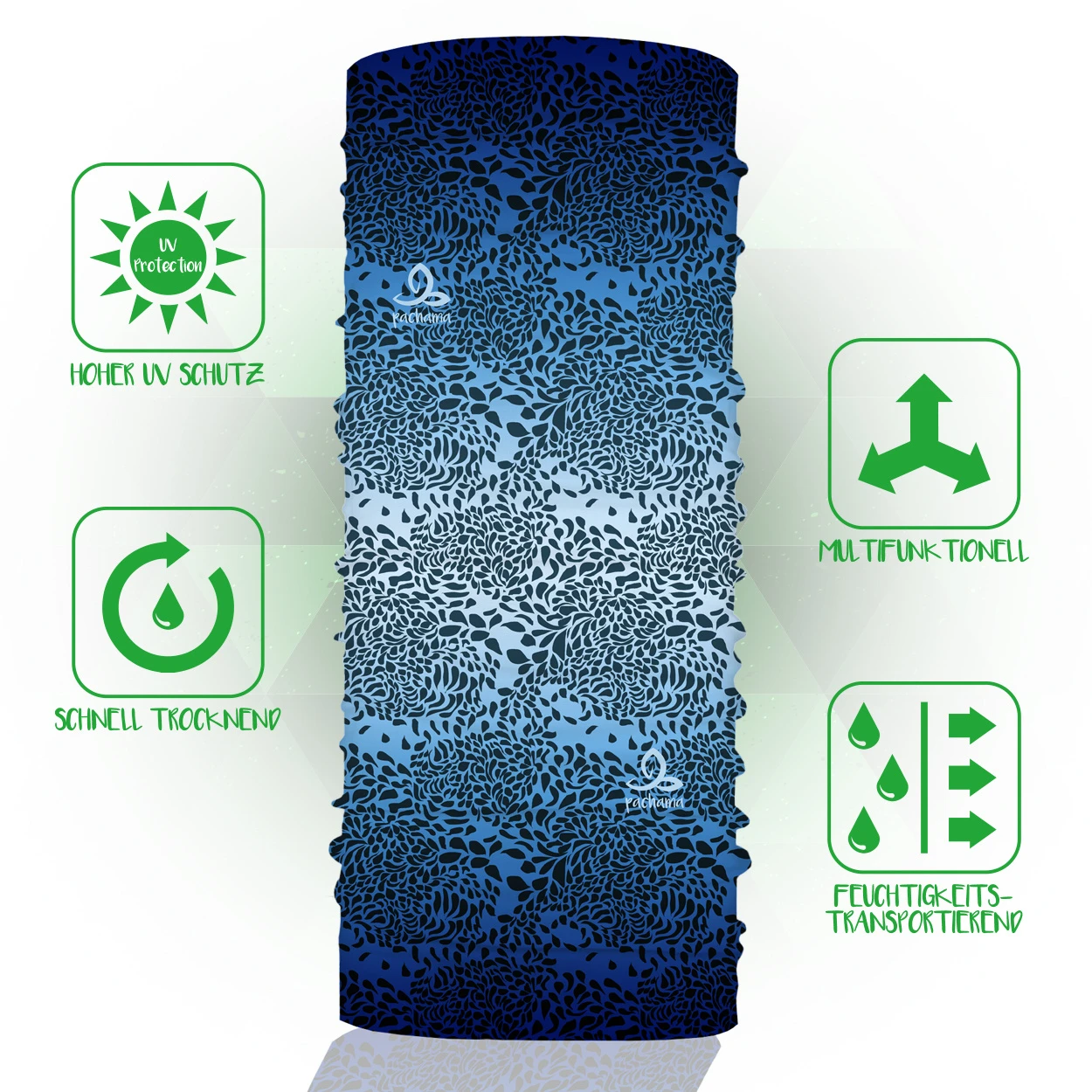 Das pachama Original Multifunktionstuch ist Oeko-Tex® zertifiziert und wird sowohl mit viel Liebe zum Detail als auch einem hohen Maß an Nachhaltigkeit und Qualität gefertigt. Es lässt sich aufgrund seiner vielfältigen Anwendungsmöglichkeiten problemlos zu z. B. einer Mütze, einem Stirnband oder einem Haarband umwandeln und ist somit für die verschiedensten Aktivitäten der perfekte Begleiter.