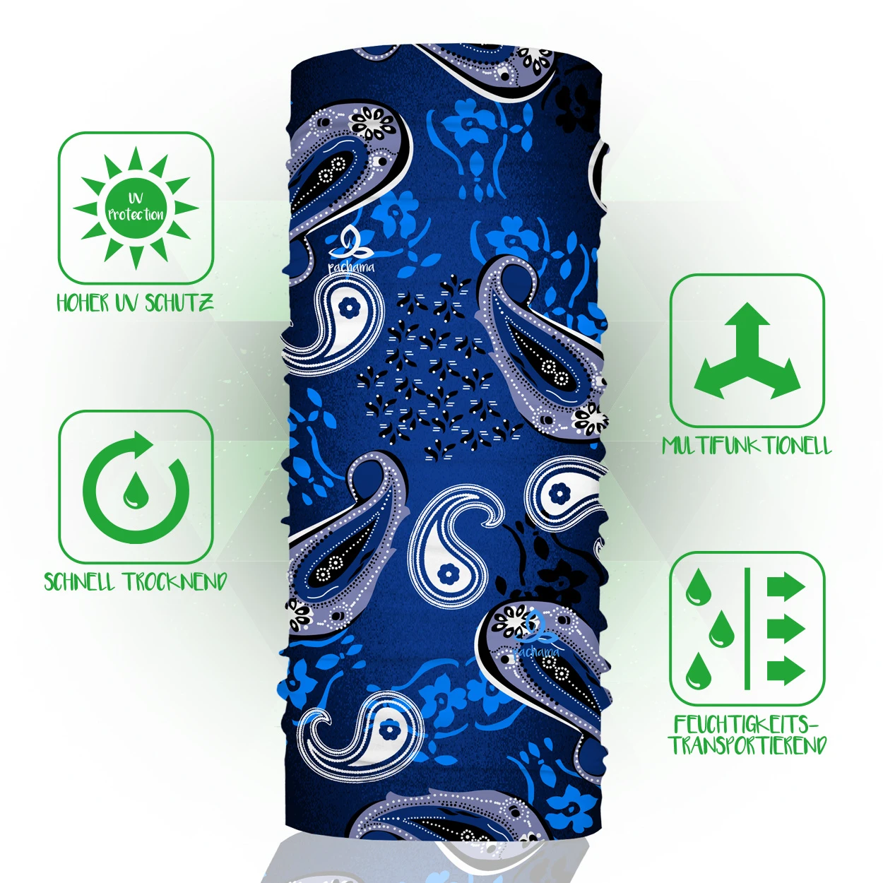 Das pachama Original Multifunktionstuch ist Oeko-Tex® zertifiziert und wird sowohl mit viel Liebe zum Detail als auch einem hohen Maß an Nachhaltigkeit und Qualität gefertigt. Es lässt sich aufgrund seiner vielfältigen Anwendungsmöglichkeiten problemlos zu z. B. einer Mütze, einem Stirnband oder einem Haarband umwandeln und ist somit für die verschiedensten Aktivitäten der perfekte Begleiter.